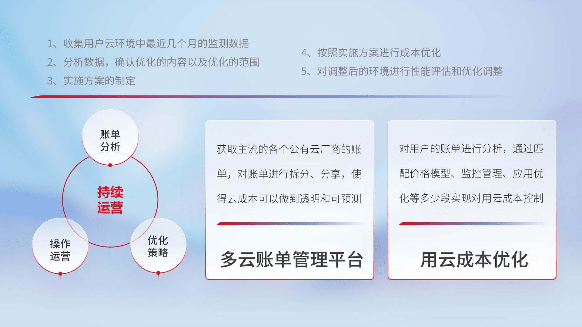 运用智能化工具分析云资源,,提供日常费用可视化工具,,,,自动账单拆分,,,,成本优化云上费用,,降本增效。。